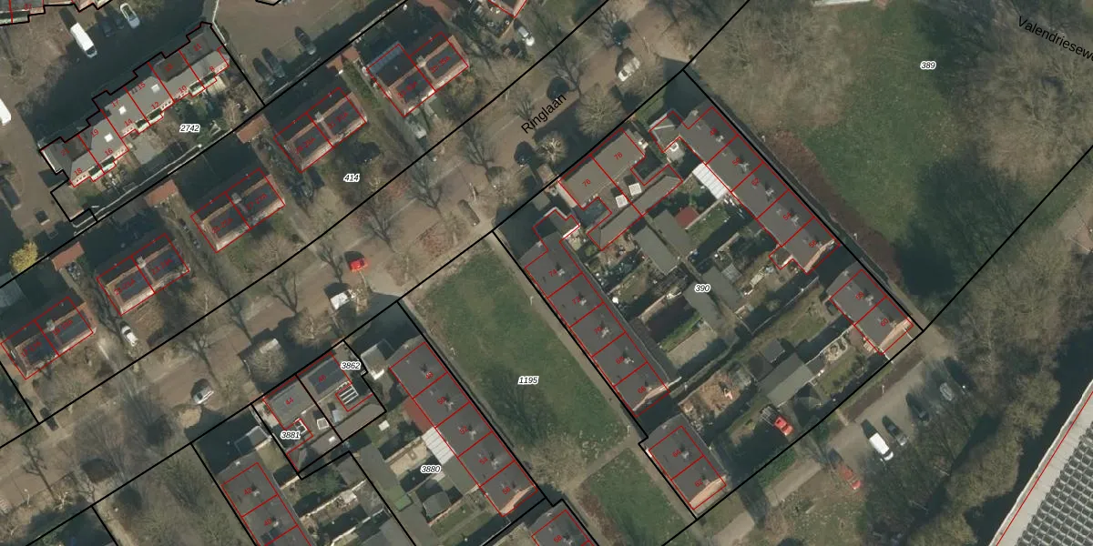 Het perceel waarop Ringlaan 74 staat heeft een oppervlakte van 3150 m². Dit is een zeer groot perceel. De perceeloppervlakte wordt geregistreerd door het Kadaster. Gedetailleerde informatie over de maten van dit perceel kunt u vinden in het rapport Kadastrale kaart met maatvoering van Ringlaan 74.