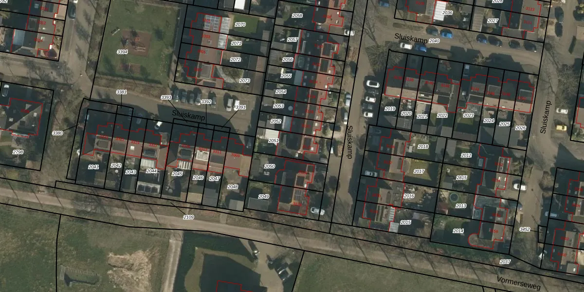 Gebruik de zoekbalk of klik op een perceel voor informatie over de adressen binnen dit perceel.