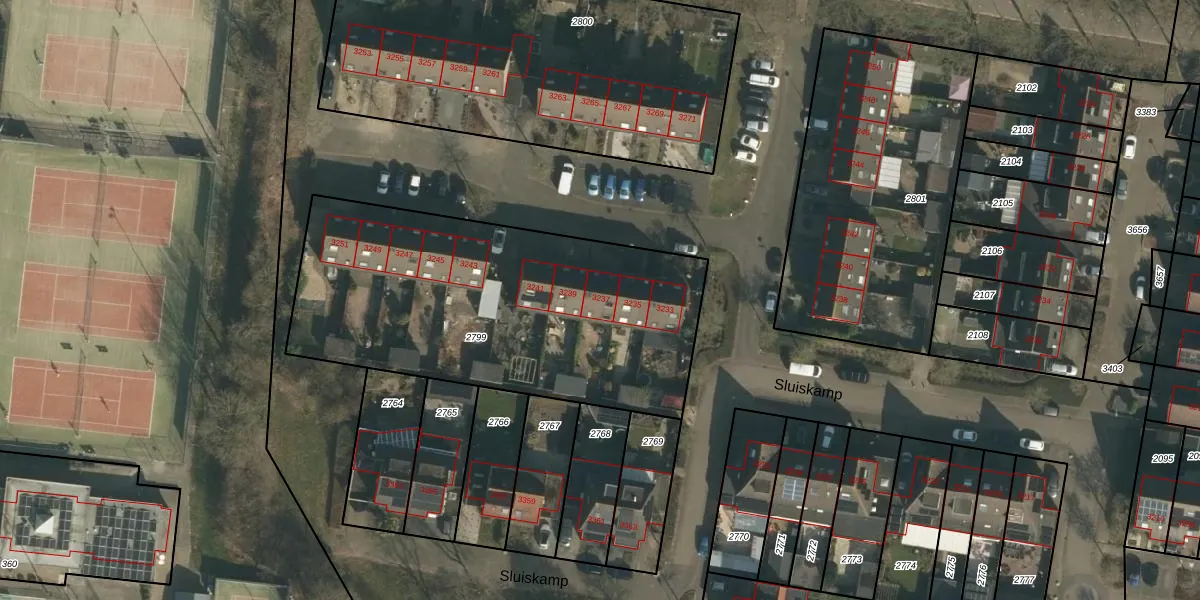 Sluiskamp 3237 is gelegen op kadastraal perceel WCN00F2799. Deze kadastrale aanduiding is uniek en wordt gebruikt door het Kadaster om eigendomsrechten en andere zakelijke rechten vast te leggen. Het perceel maakt onderdeel uit van de kadastrale gemeente Wijchen.