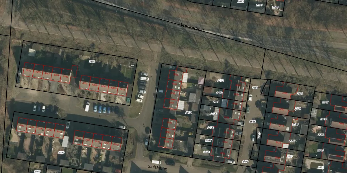 Sluiskamp 3248 is gelegen op kadastraal perceel WCN00F2801. Deze kadastrale aanduiding is uniek en wordt gebruikt door het Kadaster om eigendomsrechten en andere zakelijke rechten vast te leggen. Het perceel maakt onderdeel uit van de kadastrale gemeente Wijchen.