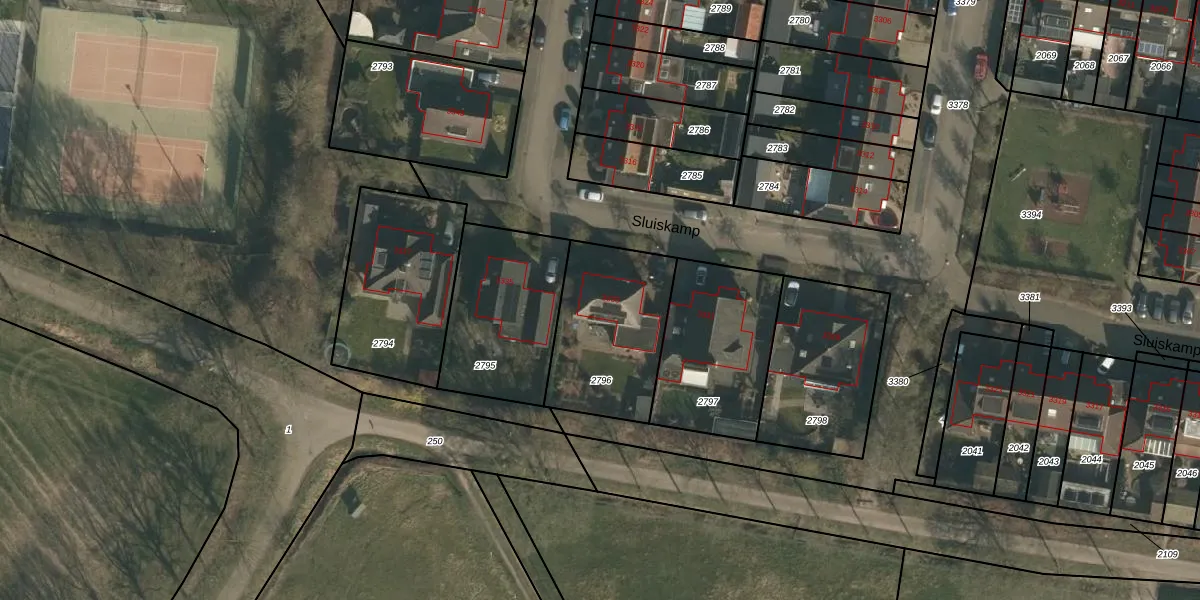 Het perceel waarop Sluiskamp 3333 staat heeft een oppervlakte van 503 m². Dit is een groot perceel. De perceeloppervlakte wordt geregistreerd door het Kadaster. Gedetailleerde informatie over de maten van dit perceel kunt u vinden in het rapport Kadastrale kaart met maatvoering van Sluiskamp 3333.