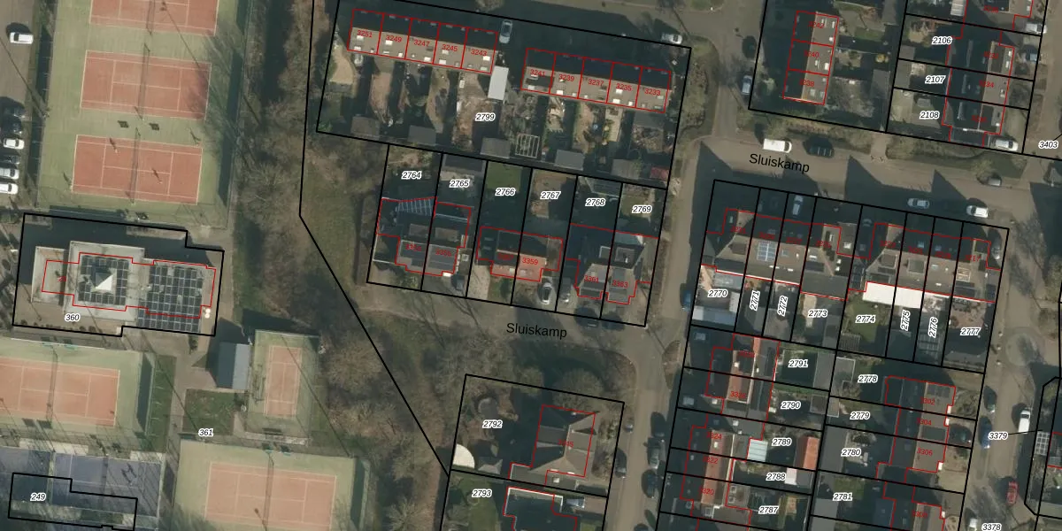 Sluiskamp 3359 is gelegen op kadastraal perceel WCN00F2767. Deze kadastrale aanduiding is uniek en wordt gebruikt door het Kadaster om eigendomsrechten en andere zakelijke rechten vast te leggen. Het perceel maakt onderdeel uit van de kadastrale gemeente Wijchen.