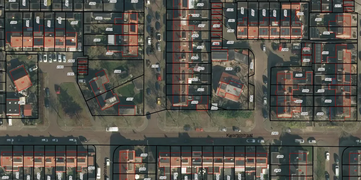 Gebruik de zoekbalk of klik op een perceel voor informatie over de adressen binnen dit perceel.