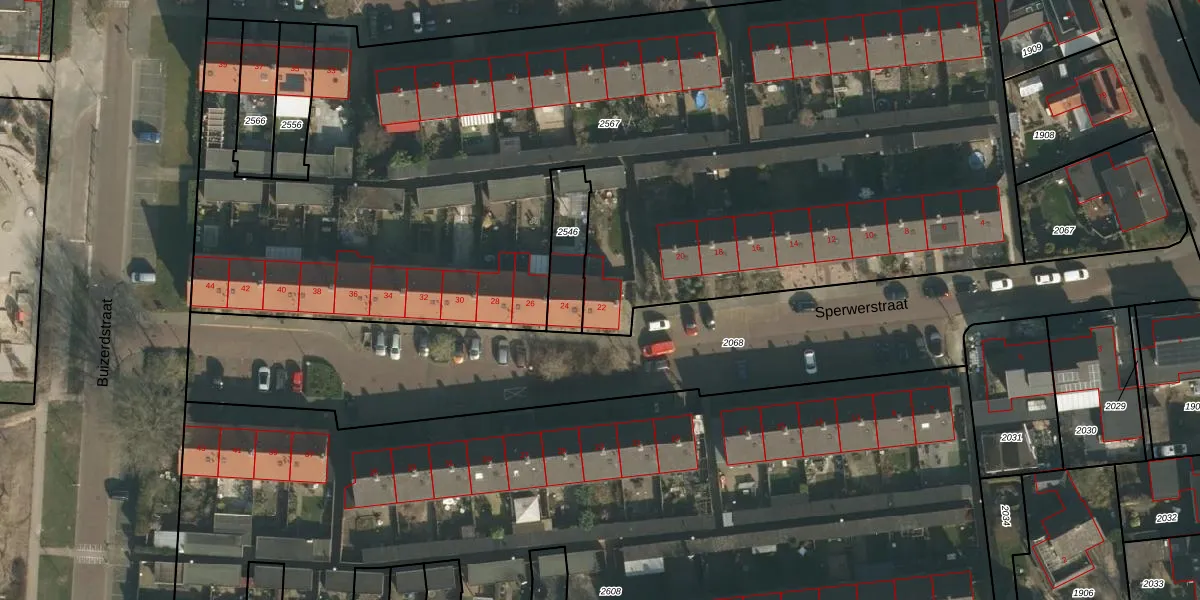 Het perceel waarop Sperwerstraat 22 staat heeft een oppervlakte van 6147 m². Dit is een zeer groot perceel. De perceeloppervlakte wordt geregistreerd door het Kadaster. Gedetailleerde informatie over de maten van dit perceel kunt u vinden in het rapport Kadastrale kaart met maatvoering van Sperwerstraat 22.