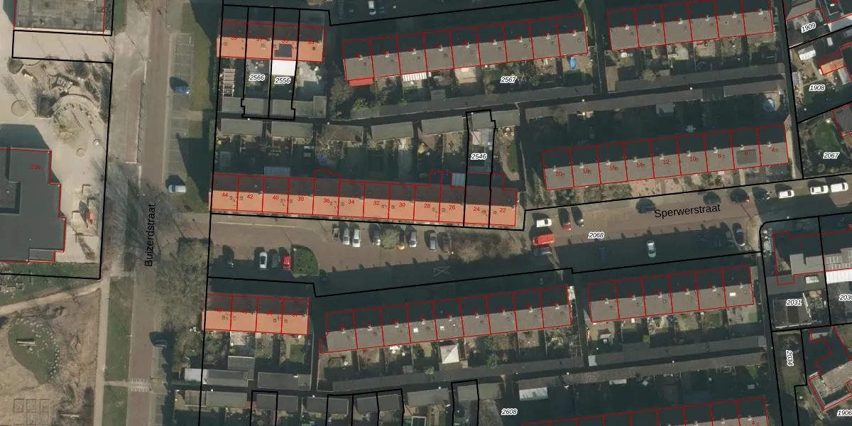 Het perceel waarop Sperwerstraat 28 staat heeft een oppervlakte van 6147 m². Dit is een zeer groot perceel. De perceeloppervlakte wordt geregistreerd door het Kadaster. Gedetailleerde informatie over de maten van dit perceel kunt u vinden in het rapport Kadastrale kaart met maatvoering van Sperwerstraat 28.