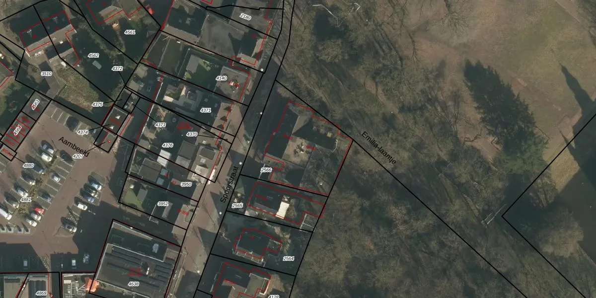 Spoorstraat 54 is gelegen op kadastraal perceel WCN00H2566. Deze kadastrale aanduiding is uniek en wordt gebruikt door het Kadaster om eigendomsrechten en andere zakelijke rechten vast te leggen. Het perceel maakt onderdeel uit van de kadastrale gemeente Wijchen.