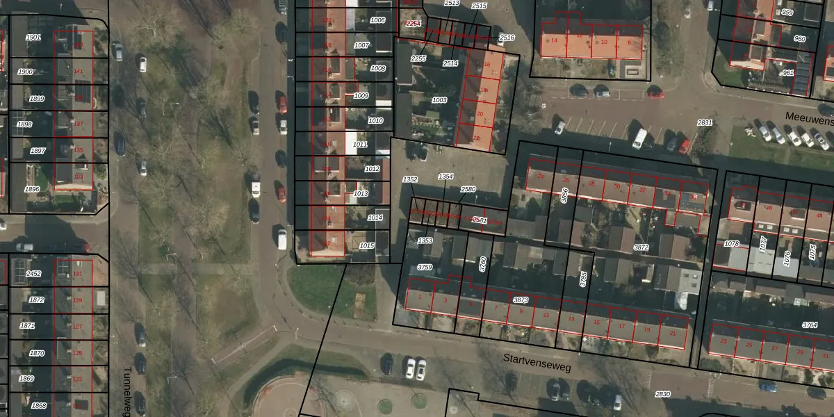 Gebruik de zoekbalk of klik op een perceel voor informatie over de adressen binnen dit perceel.