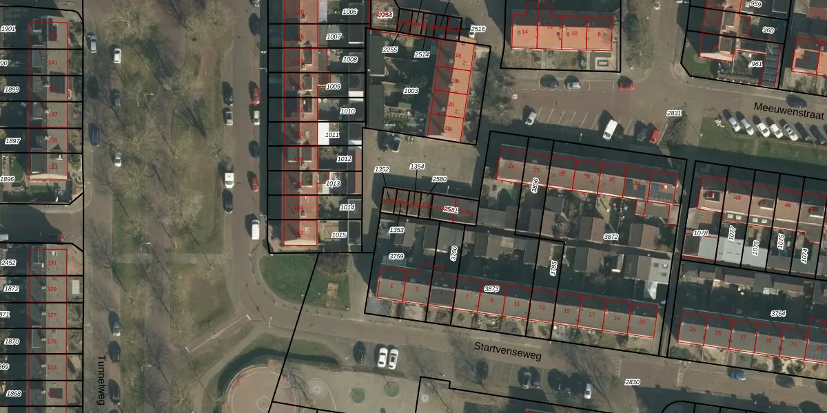 Gebruik de zoekbalk of klik op een perceel voor informatie over de adressen binnen dit perceel.