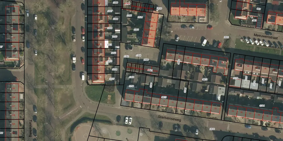 Startvenseweg 1-G04 is gelegen op kadastraal perceel WCN00I2580. Deze kadastrale aanduiding is uniek en wordt gebruikt door het Kadaster om eigendomsrechten en andere zakelijke rechten vast te leggen. Het perceel maakt onderdeel uit van de kadastrale gemeente Wijchen.