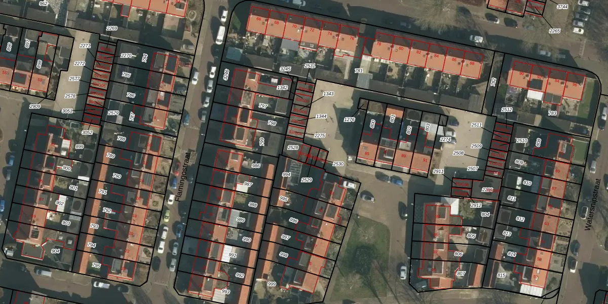 Gebruik de zoekbalk of klik op een perceel voor informatie over de adressen binnen dit perceel.