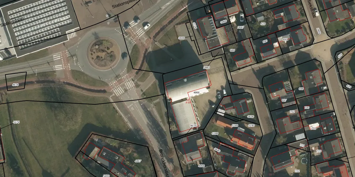 Stationsplein 9 is gelegen op kadastraal perceel WCN00H4866. Deze kadastrale aanduiding is uniek en wordt gebruikt door het Kadaster om eigendomsrechten en andere zakelijke rechten vast te leggen. Het perceel maakt onderdeel uit van de kadastrale gemeente Wijchen.