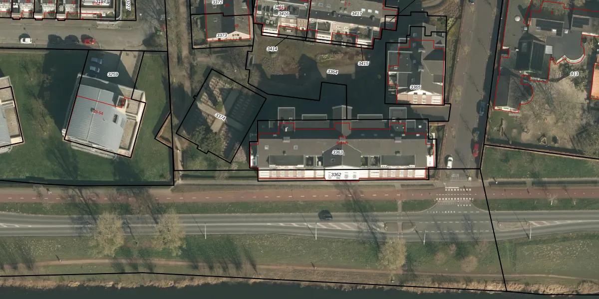 Het perceel waarop het adres ligt is WCN00-I-3363. De afkorting 'WCN00' staat voor kadastrale gemeente Wijchen. Het perceel is 1000 m² groot. Dat is kleiner dan de gemiddelde perceeloppervlakte in Wijchen, dat op 1827,1 m² ligt. Het kleinste perceel in de kadastrale gemeente is 0 m² groot. De grootste perceeloppervlakte is 66,4 ha. Op het perceel zijn 24 adressen aanwezig. De huidige grenzen van het perceel zijn digitaal in de Basisregistratie Kadaster (BRK) geregistreerd op 18-09-2009.