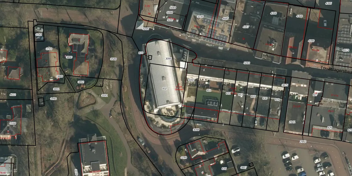 Touwslagersbaan 75 is gelegen op kadastraal perceel WCN00F832. Deze kadastrale aanduiding is uniek en wordt gebruikt door het Kadaster om eigendomsrechten en andere zakelijke rechten vast te leggen. Het perceel maakt onderdeel uit van de kadastrale gemeente Wijchen.
