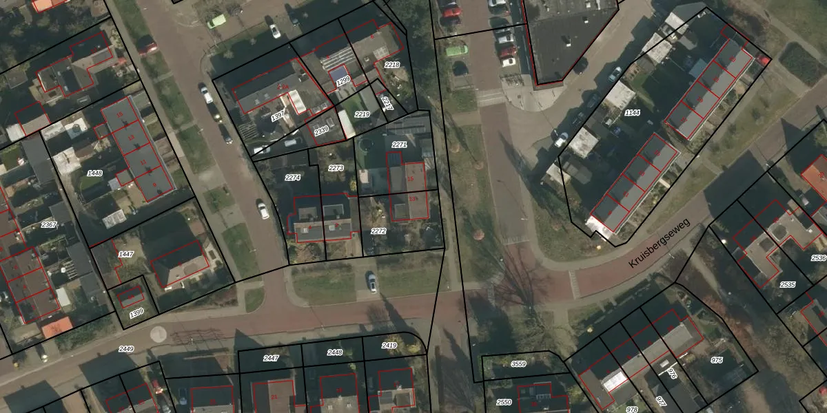 Het perceel waarop het adres ligt is WCN00-G-2272. De afkorting 'WCN00' staat voor kadastrale gemeente Wijchen. Het perceel is kleiner dan gemiddeld in Wijchen. Het perceel is 291 m² groot, terwijl het gemiddelde ligt op 1827,1 m². Het kleinste perceel in de kadastrale gemeente is 0 m² groot. De grootste perceeloppervlakte is 66,4 ha. Dit is het enige adres dat aanwezig is op het perceel. In de Basisregistratie Kadaster (BRK) werden de grenzen van het perceel geregistreerd op 28-01-2003.
