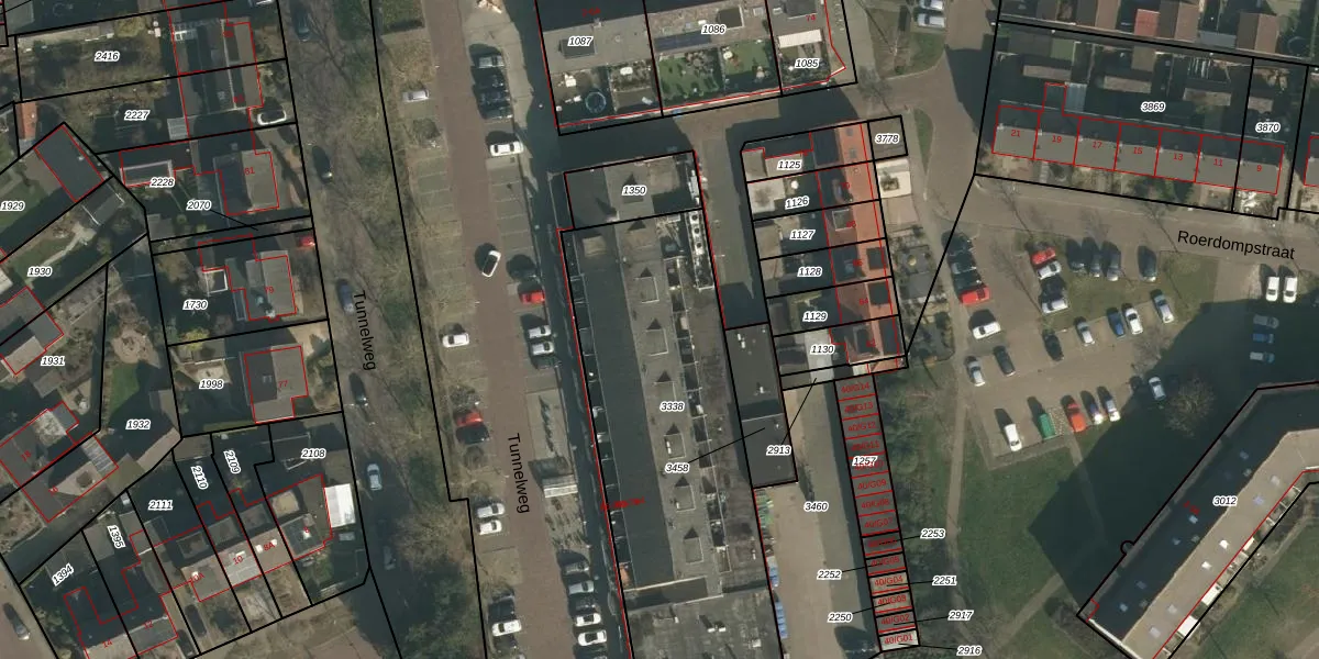 Het perceel waarop Tunnelweg 60 staat heeft een oppervlakte van 1974 m². Dit is een zeer groot perceel. De perceeloppervlakte wordt geregistreerd door het Kadaster. Gedetailleerde informatie over de maten van dit perceel kunt u vinden in het rapport Kadastrale kaart met maatvoering van Tunnelweg 60.
