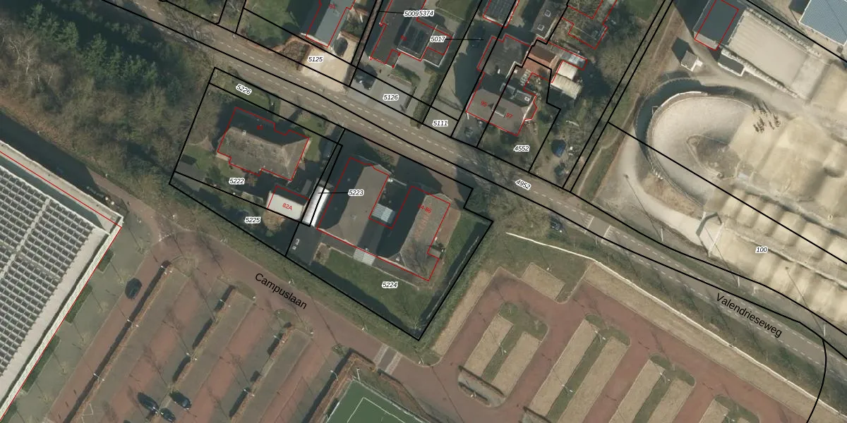 Valendrieseweg 86 is gelegen op kadastraal perceel WCN00H5224. Deze kadastrale aanduiding is uniek en wordt gebruikt door het Kadaster om eigendomsrechten en andere zakelijke rechten vast te leggen. Het perceel maakt onderdeel uit van de kadastrale gemeente Wijchen.