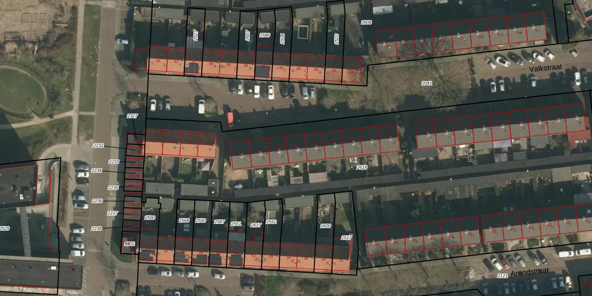 Het perceel waarop Valkstraat 35 staat heeft een oppervlakte van 6470 m². Dit is een zeer groot perceel. De perceeloppervlakte wordt geregistreerd door het Kadaster. Gedetailleerde informatie over de maten van dit perceel kunt u vinden in het rapport Kadastrale kaart met maatvoering van Valkstraat 35.