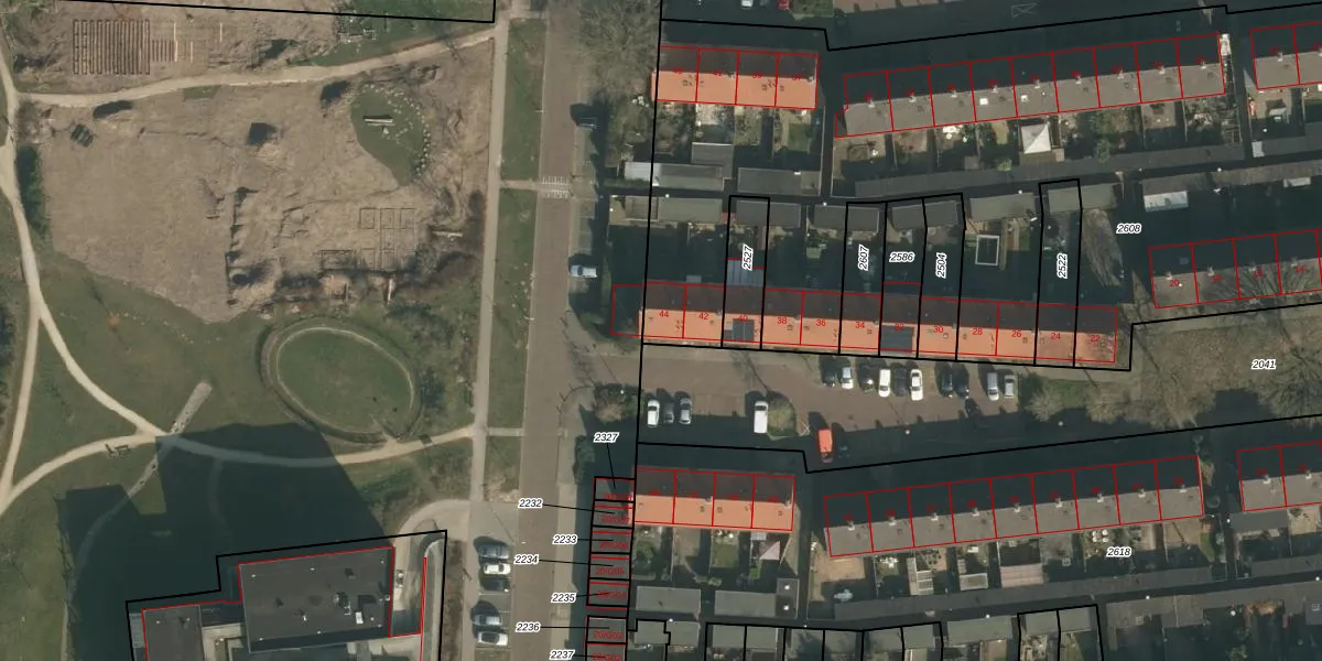 Valkstraat 44 is gelegen op kadastraal perceel WCN00G2608. Deze kadastrale aanduiding is uniek en wordt gebruikt door het Kadaster om eigendomsrechten en andere zakelijke rechten vast te leggen. Het perceel maakt onderdeel uit van de kadastrale gemeente Wijchen.