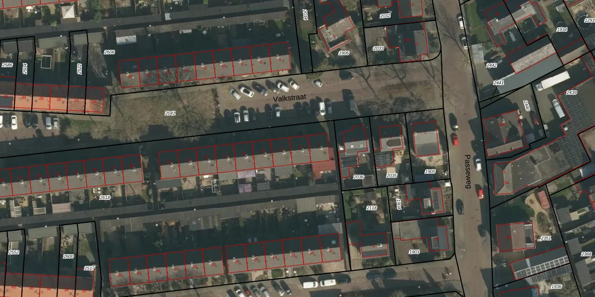 Het perceel waarop Valkstraat 9 staat heeft een oppervlakte van 6470 m². Dit is een zeer groot perceel. De perceeloppervlakte wordt geregistreerd door het Kadaster. Gedetailleerde informatie over de maten van dit perceel kunt u vinden in het rapport Kadastrale kaart met maatvoering van Valkstraat 9.