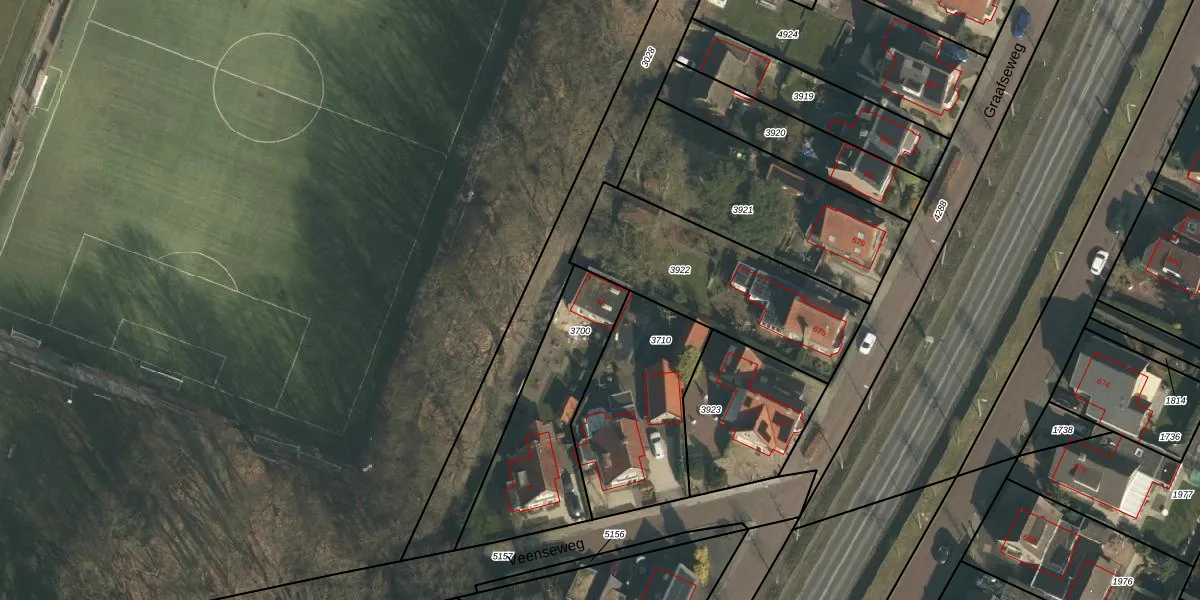 Veenseweg 4-A is gelegen op kadastraal perceel WCN00H3700. Deze kadastrale aanduiding is uniek en wordt gebruikt door het Kadaster om eigendomsrechten en andere zakelijke rechten vast te leggen. Het perceel maakt onderdeel uit van de kadastrale gemeente Wijchen.
