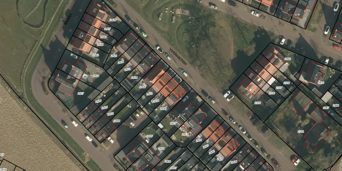 Veldwachter 25 is gelegen op kadastraal perceel WCN00P2418. Deze kadastrale aanduiding is uniek en wordt gebruikt door het Kadaster om eigendomsrechten en andere zakelijke rechten vast te leggen. Het perceel maakt onderdeel uit van de kadastrale gemeente Wijchen.