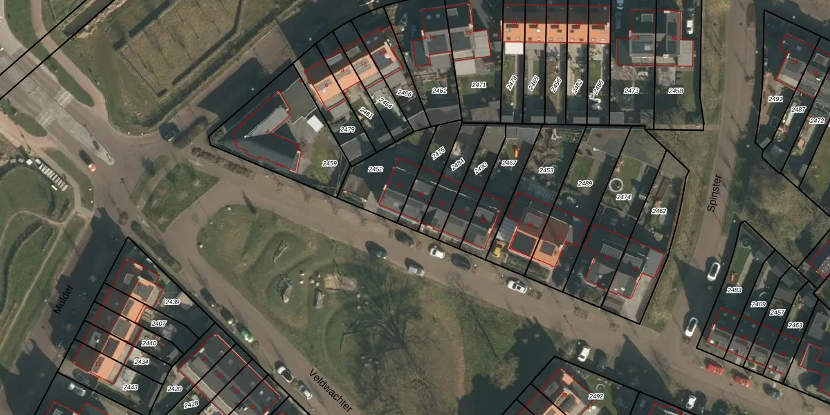Veldwachter 47 is gelegen op kadastraal perceel WCN00P2475. Deze kadastrale aanduiding is uniek en wordt gebruikt door het Kadaster om eigendomsrechten en andere zakelijke rechten vast te leggen. Het perceel maakt onderdeel uit van de kadastrale gemeente Wijchen.