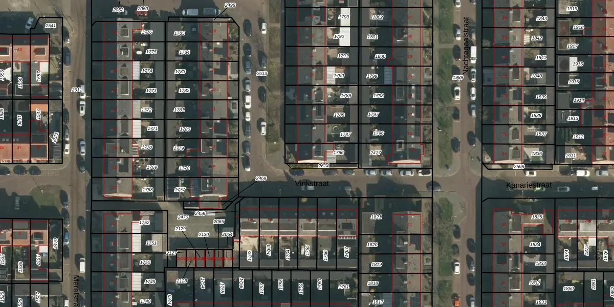 Vinkstraat 2 is gelegen op kadastraal perceel WCN00G1786. Deze kadastrale aanduiding is uniek en wordt gebruikt door het Kadaster om eigendomsrechten en andere zakelijke rechten vast te leggen. Het perceel maakt onderdeel uit van de kadastrale gemeente Wijchen.