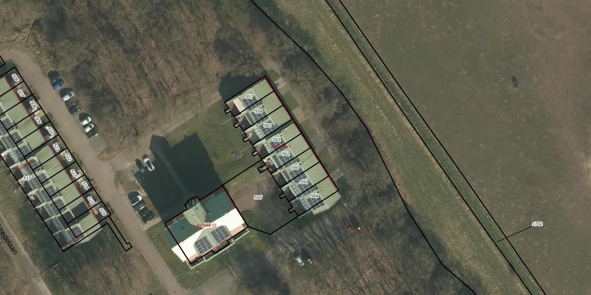 Vredelaan 69 is gelegen op kadastraal perceel WCN00Q562. Deze kadastrale aanduiding is uniek en wordt gebruikt door het Kadaster om eigendomsrechten en andere zakelijke rechten vast te leggen. Het perceel maakt onderdeel uit van de kadastrale gemeente Wijchen.