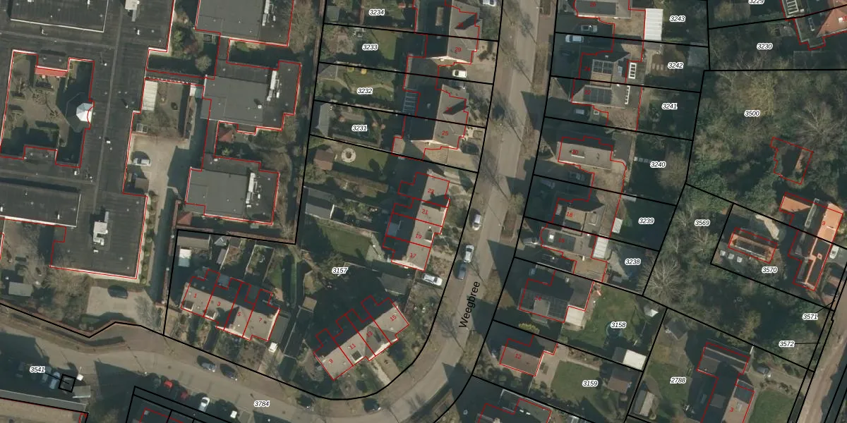 Weegbree 21 is gelegen op kadastraal perceel WCN00B3157. Deze kadastrale aanduiding is uniek en wordt gebruikt door het Kadaster om eigendomsrechten en andere zakelijke rechten vast te leggen. Het perceel maakt onderdeel uit van de kadastrale gemeente Wijchen.