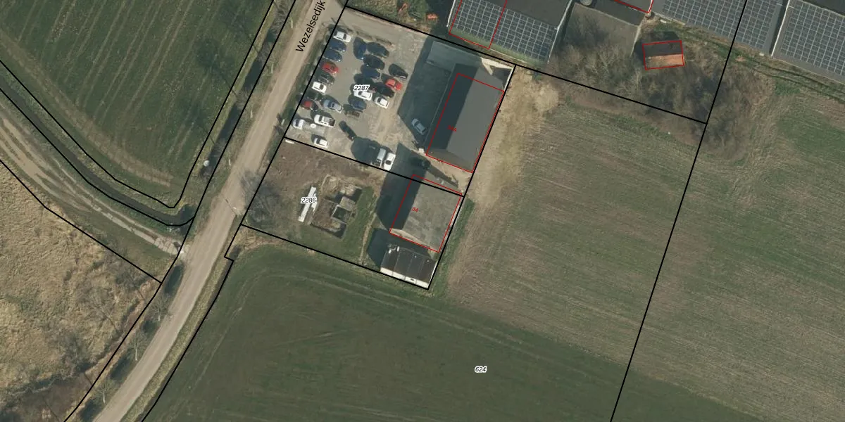 Wezelsedijk 34 is gelegen op kadastraal perceel WCN00K2286. Deze kadastrale aanduiding is uniek en wordt gebruikt door het Kadaster om eigendomsrechten en andere zakelijke rechten vast te leggen. Het perceel maakt onderdeel uit van de kadastrale gemeente Wijchen.
