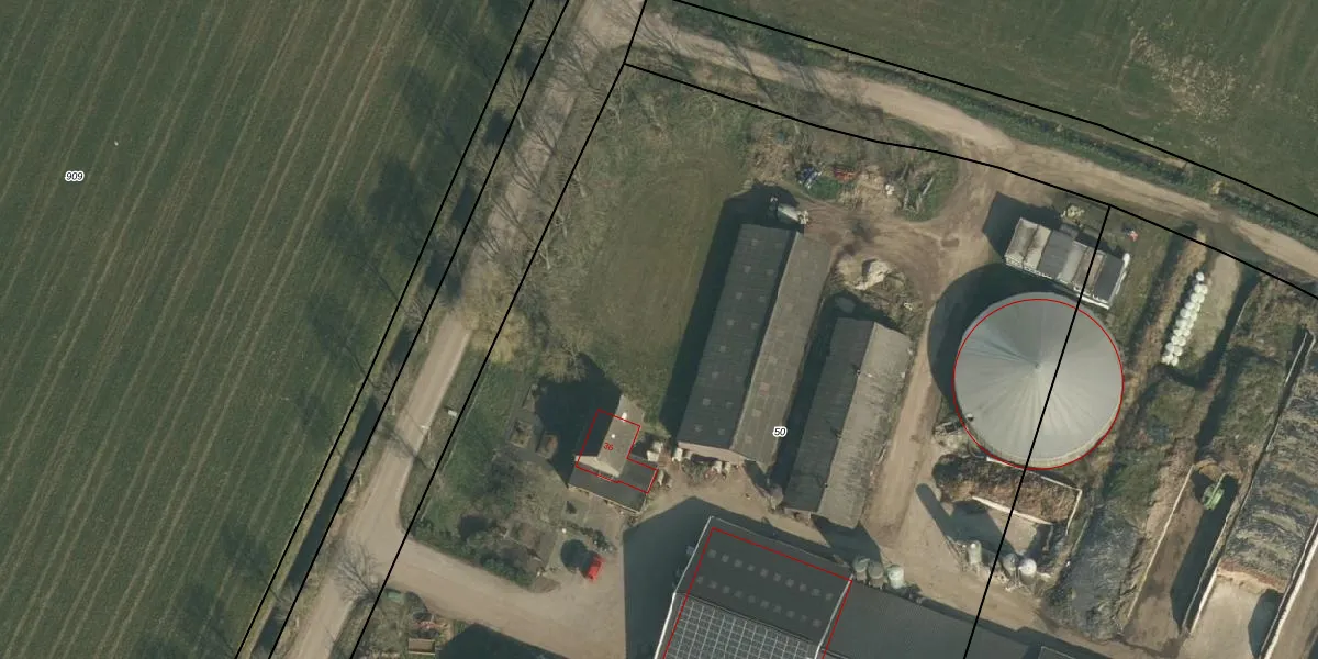 Het adres is gelegen op perceel 50 in de sectie K en de kadastrale gemeente Wijchen. De kadastrale aanduiding is aldus WCN00-K-50. De gemiddelde perceeloppervlakte in de kadastrale gemeente Wijchen is 1828,2 m². Dit perceel is met zijn 9520 m² dus groter dan gemiddeld. Het grootste perceel in de kadastrale gemeente is 66,4 ha. Het kleinste perceel heeft een oppervlakte van 0 m². Op het perceel liggen in totaal 3 adressen. De huidige grenzen van het perceel zijn digitaal in de Basisregistratie Kadaster (BRK) geregistreerd op 13-07-2000.