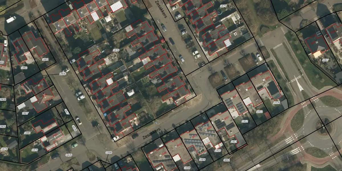 Zesakkers 2103 is gelegen op kadastraal perceel WCN00F1876. Deze kadastrale aanduiding is uniek en wordt gebruikt door het Kadaster om eigendomsrechten en andere zakelijke rechten vast te leggen. Het perceel maakt onderdeel uit van de kadastrale gemeente Wijchen.