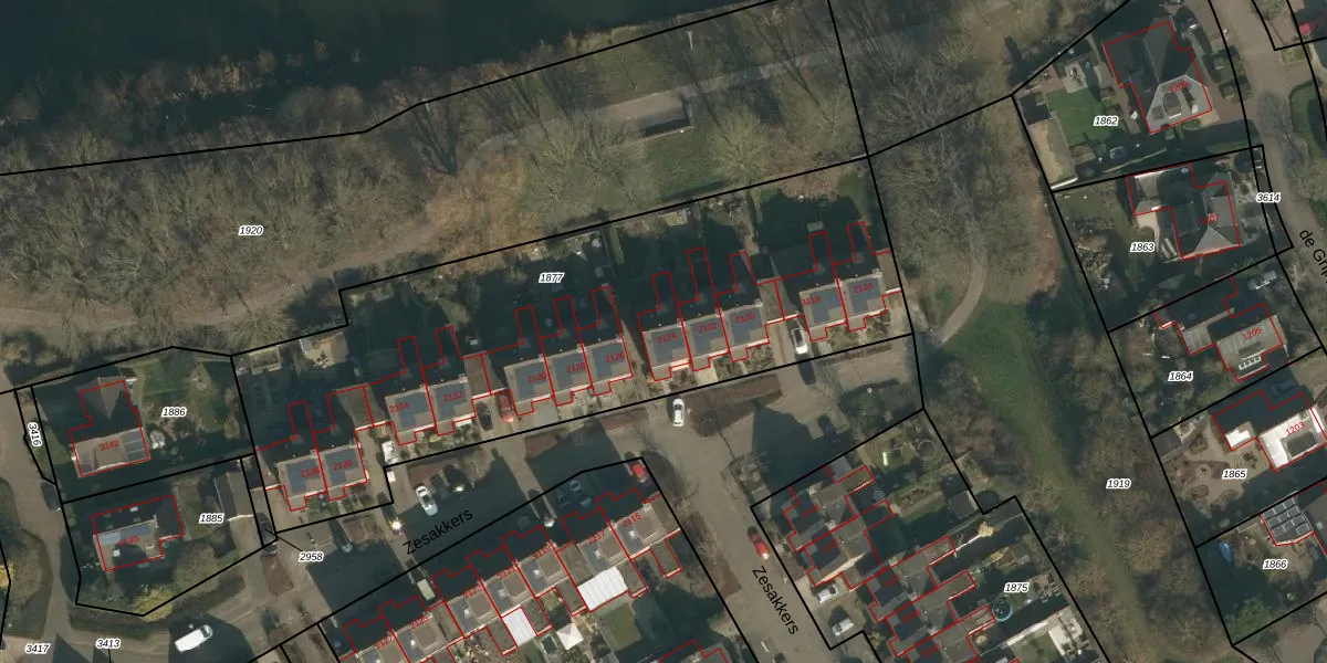 Het perceel waarop Zesakkers 2124 staat heeft een oppervlakte van 2770 m². Dit is een zeer groot perceel. De perceeloppervlakte wordt geregistreerd door het Kadaster. Gedetailleerde informatie over de maten van dit perceel kunt u vinden in het rapport Kadastrale kaart met maatvoering van Zesakkers 2124.