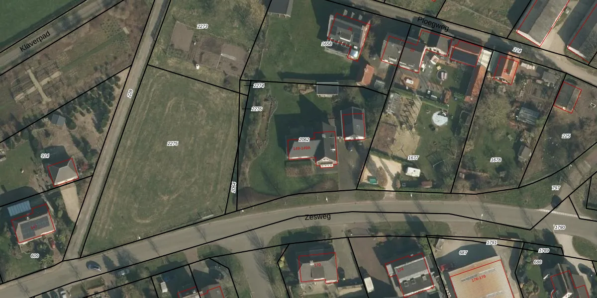 Zesweg 149 is gelegen op kadastraal perceel WCN00K2062. Deze kadastrale aanduiding is uniek en wordt gebruikt door het Kadaster om eigendomsrechten en andere zakelijke rechten vast te leggen. Het perceel maakt onderdeel uit van de kadastrale gemeente Wijchen.