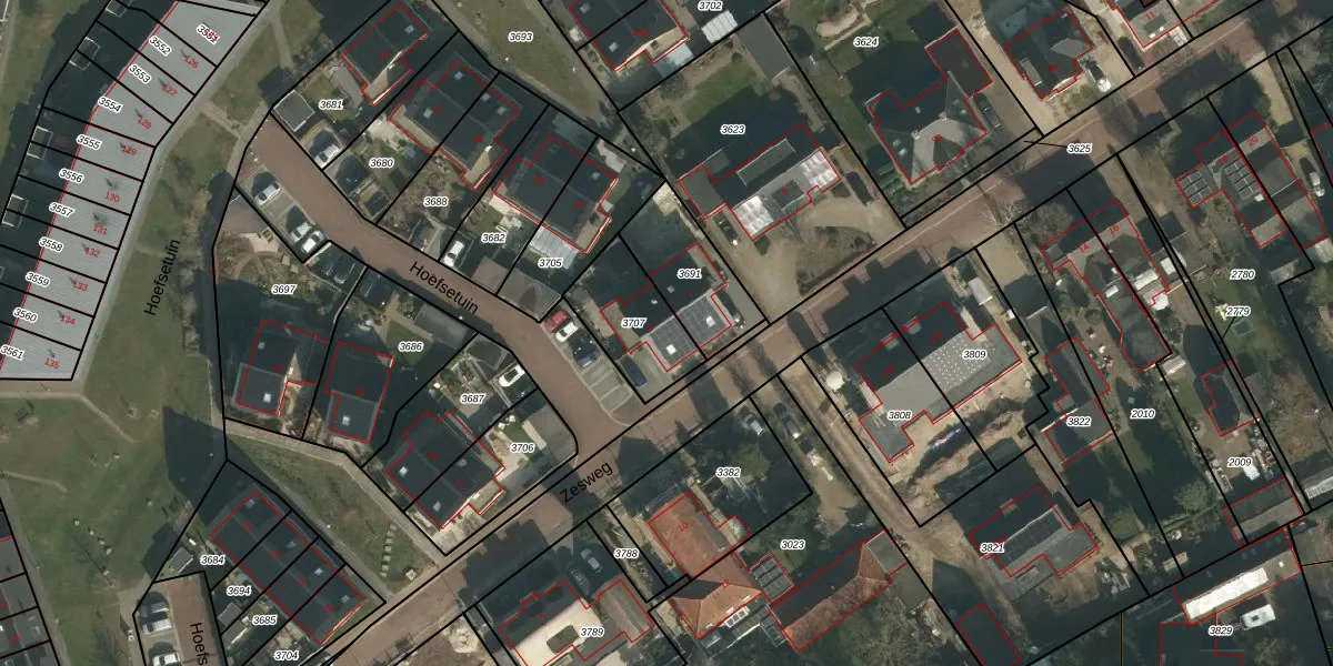 Zesweg 5 is gelegen op kadastraal perceel WCN00B3707. Deze kadastrale aanduiding is uniek en wordt gebruikt door het Kadaster om eigendomsrechten en andere zakelijke rechten vast te leggen. Het perceel maakt onderdeel uit van de kadastrale gemeente Wijchen.