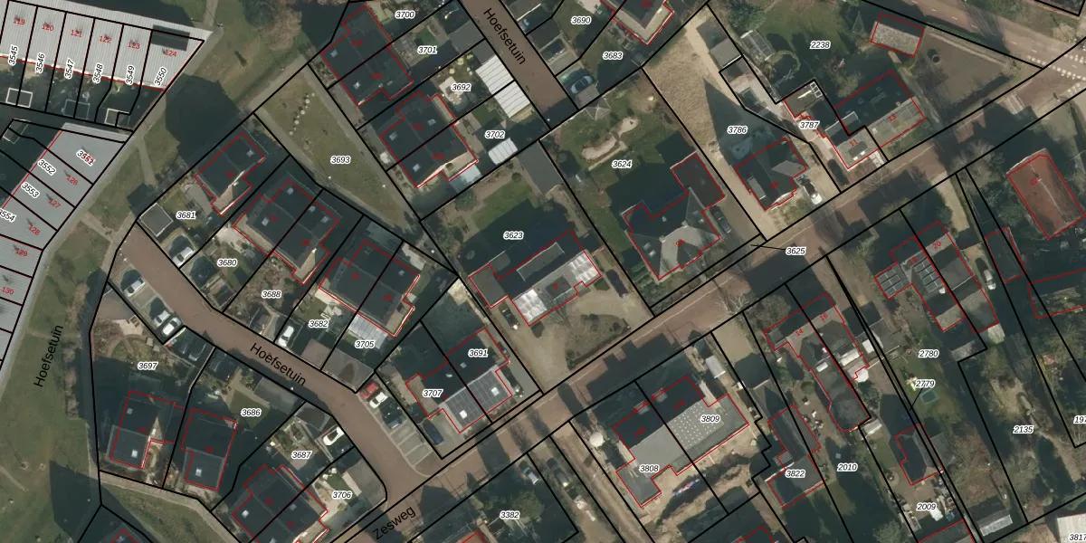 Zesweg 9 is gelegen op kadastraal perceel WCN00B3623. Deze kadastrale aanduiding is uniek en wordt gebruikt door het Kadaster om eigendomsrechten en andere zakelijke rechten vast te leggen. Het perceel maakt onderdeel uit van de kadastrale gemeente Wijchen.