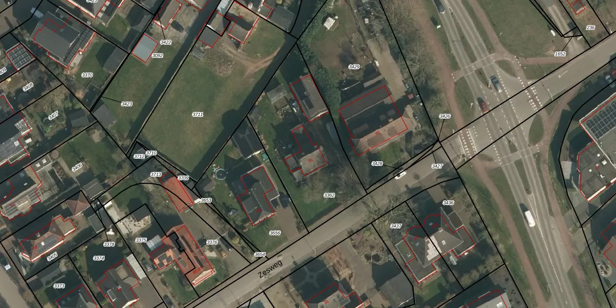 Zesweg 91 is gelegen op kadastraal perceel WCN00B3362. Deze kadastrale aanduiding is uniek en wordt gebruikt door het Kadaster om eigendomsrechten en andere zakelijke rechten vast te leggen. Het perceel maakt onderdeel uit van de kadastrale gemeente Wijchen.