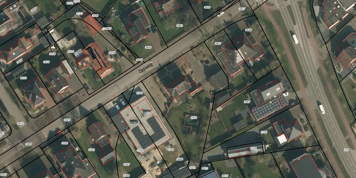 Zesweg 96 is gelegen op kadastraal perceel WCN00B3770. Deze kadastrale aanduiding is uniek en wordt gebruikt door het Kadaster om eigendomsrechten en andere zakelijke rechten vast te leggen. Het perceel maakt onderdeel uit van de kadastrale gemeente Wijchen.
