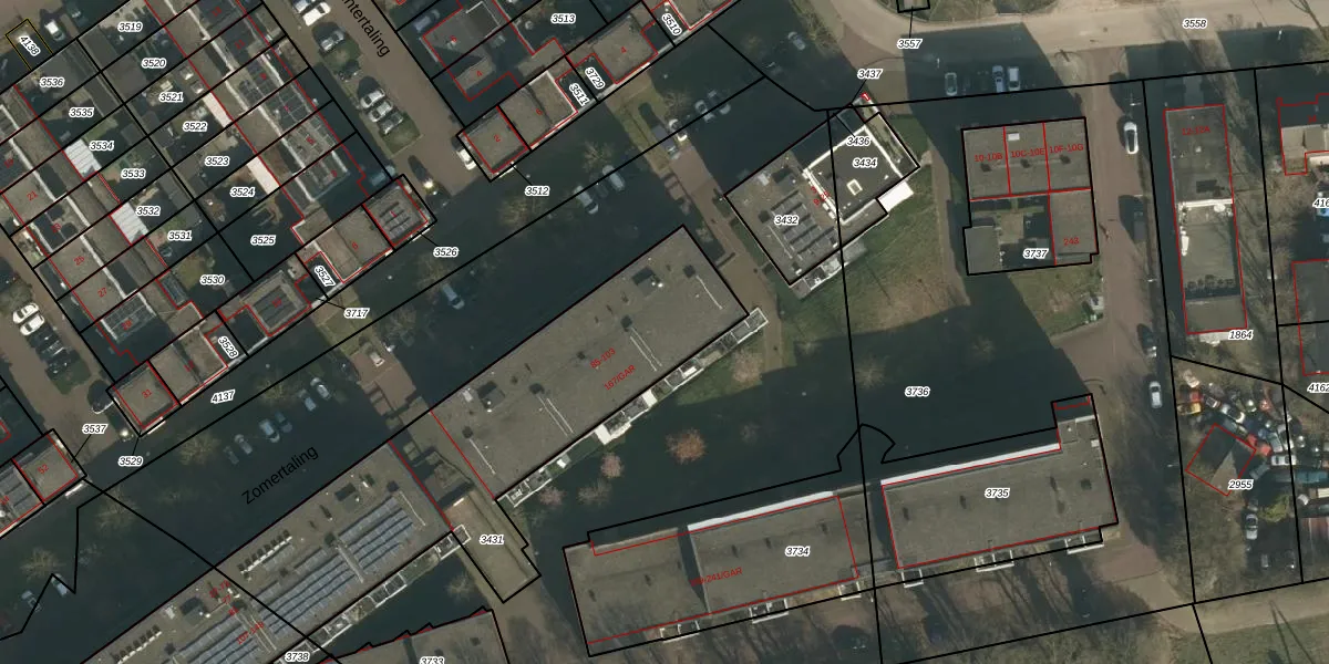 Het perceel waarop Zomertaling 33 staat heeft een oppervlakte van 1521 m². Dit is een zeer groot perceel. De perceeloppervlakte wordt geregistreerd door het Kadaster. Gedetailleerde informatie over de maten van dit perceel kunt u vinden in het rapport Kadastrale kaart met maatvoering van Zomertaling 33.