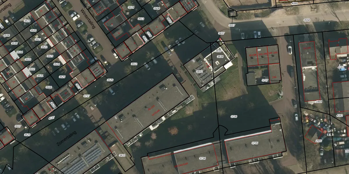 Zomertaling 43 is gelegen op kadastraal perceel WCN00I3431. Deze kadastrale aanduiding is uniek en wordt gebruikt door het Kadaster om eigendomsrechten en andere zakelijke rechten vast te leggen. Het perceel maakt onderdeel uit van de kadastrale gemeente Wijchen.
