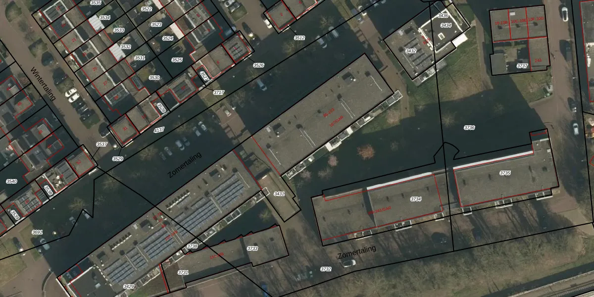 Het perceel waarop Zomertaling 65 staat heeft een oppervlakte van 1521 m². Dit is een zeer groot perceel. De perceeloppervlakte wordt geregistreerd door het Kadaster. Gedetailleerde informatie over de maten van dit perceel kunt u vinden in het rapport Kadastrale kaart met maatvoering van Zomertaling 65.