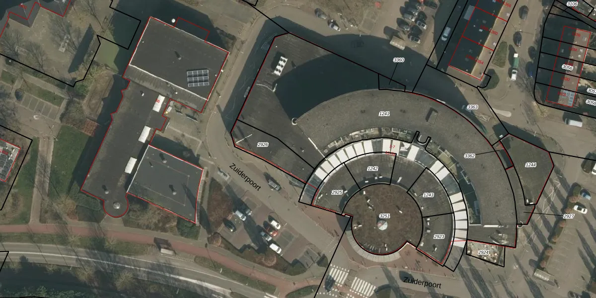 Het perceel waarop Zuiderpoort 30 staat heeft een oppervlakte van 2435 m². Dit is een zeer groot perceel. De perceeloppervlakte wordt geregistreerd door het Kadaster. Gedetailleerde informatie over de maten van dit perceel kunt u vinden in het rapport Kadastrale kaart met maatvoering van Zuiderpoort 30.