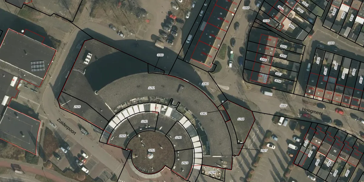 Het perceel waarop Zuiderpoort 33 staat heeft een oppervlakte van 2435 m². Dit is een zeer groot perceel. De perceeloppervlakte wordt geregistreerd door het Kadaster. Gedetailleerde informatie over de maten van dit perceel kunt u vinden in het rapport Kadastrale kaart met maatvoering van Zuiderpoort 33.