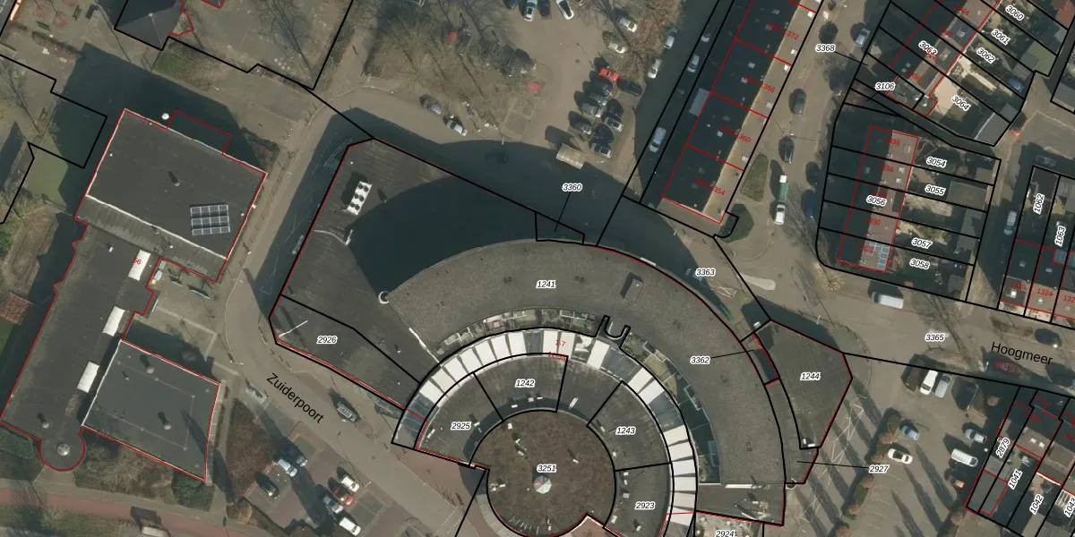 Het perceel waarop Zuiderpoort 34 staat heeft een oppervlakte van 2435 m². Dit is een zeer groot perceel. De perceeloppervlakte wordt geregistreerd door het Kadaster. Gedetailleerde informatie over de maten van dit perceel kunt u vinden in het rapport Kadastrale kaart met maatvoering van Zuiderpoort 34.