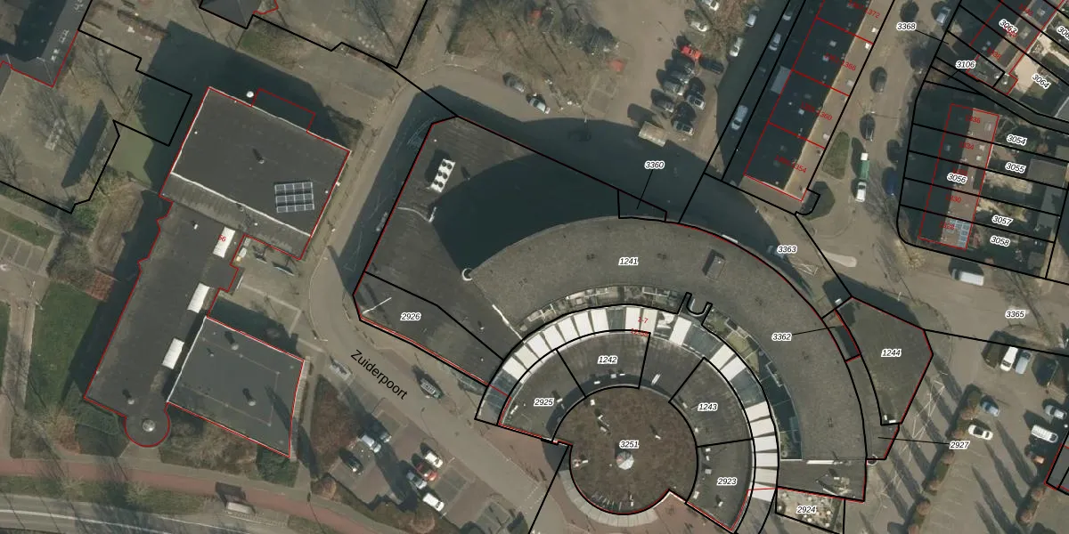 Het perceel waarop Zuiderpoort 38 staat heeft een oppervlakte van 2435 m². Dit is een zeer groot perceel. De perceeloppervlakte wordt geregistreerd door het Kadaster. Gedetailleerde informatie over de maten van dit perceel kunt u vinden in het rapport Kadastrale kaart met maatvoering van Zuiderpoort 38.