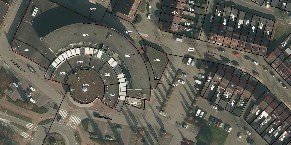 Het perceel waarop Zuiderpoort 53 staat heeft een oppervlakte van 2435 m². Dit is een zeer groot perceel. De perceeloppervlakte wordt geregistreerd door het Kadaster. Gedetailleerde informatie over de maten van dit perceel kunt u vinden in het rapport Kadastrale kaart met maatvoering van Zuiderpoort 53.