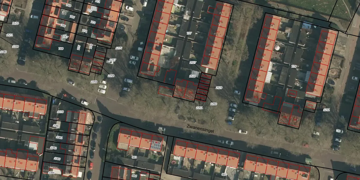 Het perceel waarop Zwanensingel 133 staat heeft een oppervlakte van 2170 m². Dit is een zeer groot perceel. De perceeloppervlakte wordt geregistreerd door het Kadaster. Gedetailleerde informatie over de maten van dit perceel kunt u vinden in het rapport Kadastrale kaart met maatvoering van Zwanensingel 133.