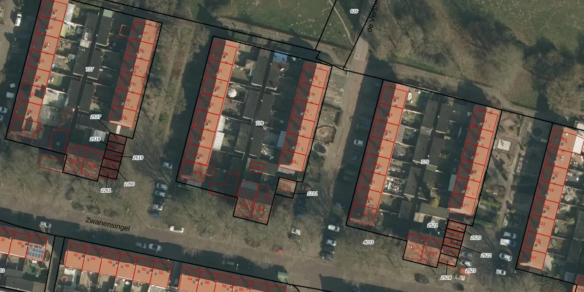 Het perceel waarop Zwanensingel 171 staat heeft een oppervlakte van 2170 m². Dit is een zeer groot perceel. De perceeloppervlakte wordt geregistreerd door het Kadaster. Gedetailleerde informatie over de maten van dit perceel kunt u vinden in het rapport Kadastrale kaart met maatvoering van Zwanensingel 171.