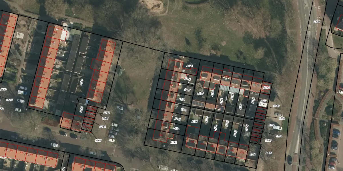 Gebruik de zoekbalk of klik op een perceel voor informatie over de adressen binnen dit perceel.