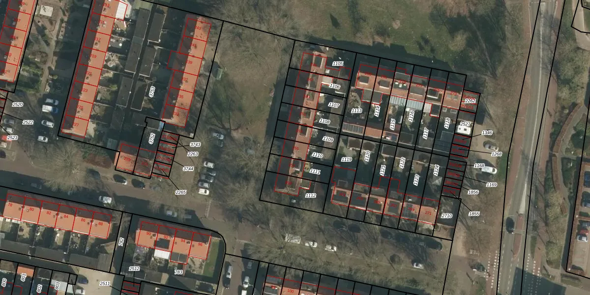 Gebruik de zoekbalk of klik op een perceel voor informatie over de adressen binnen dit perceel.